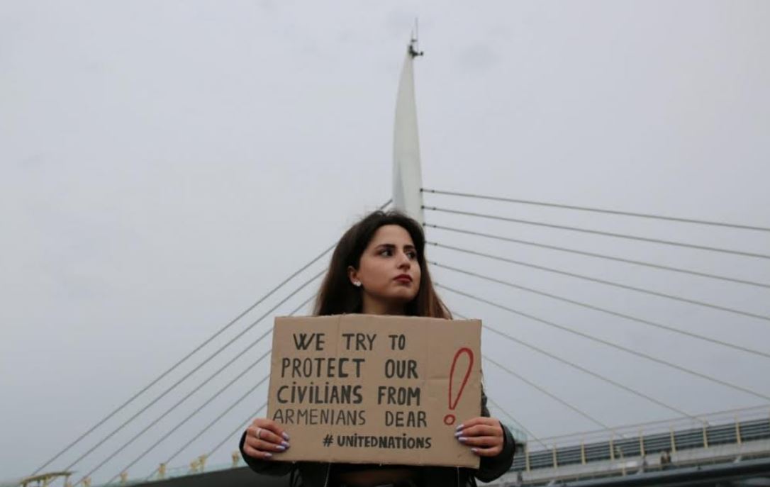 Azərbaycanlı tələbələr öz etirazlarını “Azərbaycan öz ərazilərini erməni işğalçılarından təmizləyir”, “Biz dinc əhalimizi ermənilərdən qorumağa çalışırıq”, “Ermənilər Azərbaycan uşaqlarını öldürməyə davam edərkən dünya niyə hələ də susur?” kimi şüarlarla reallaşdırıblar.