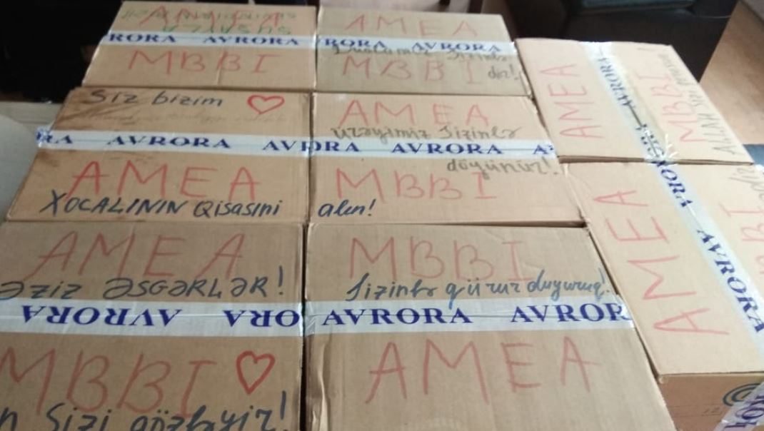 Goranboy rayonunda N saylı qərargahın əsgər və zabitləri ilə görüşən institutun bir qrup əməkdaşı onlara kollektiv adından isti geyimlər, ərzaq məhsulları, təmizlik və dərman vasitələri, kollektivin üzvləri tərəfindən ünvanlanan məktubları təqdim ediblər.