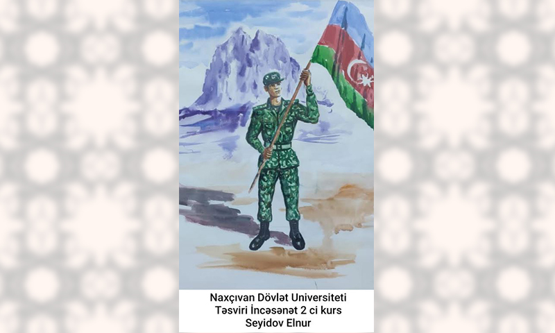 Naxçıvan Dövlət Universiteti (NDU ) incəsənət fakültəsi tələbələrinin qatıldığı sərgidə vətənpərvərlik ruhunda rəsm əsərləri yer alıb. Ali təhsil ocağının Təsviri incəsənət ixtisası üzrə II kurs tələbələri- Elnur Seyidov, Türkan Əsədova və Rəngkarlıq ixtisası üzrə IV kurs tələbəsi Sunay Nadirov müsabiqədə fəal iştirak ediblər.