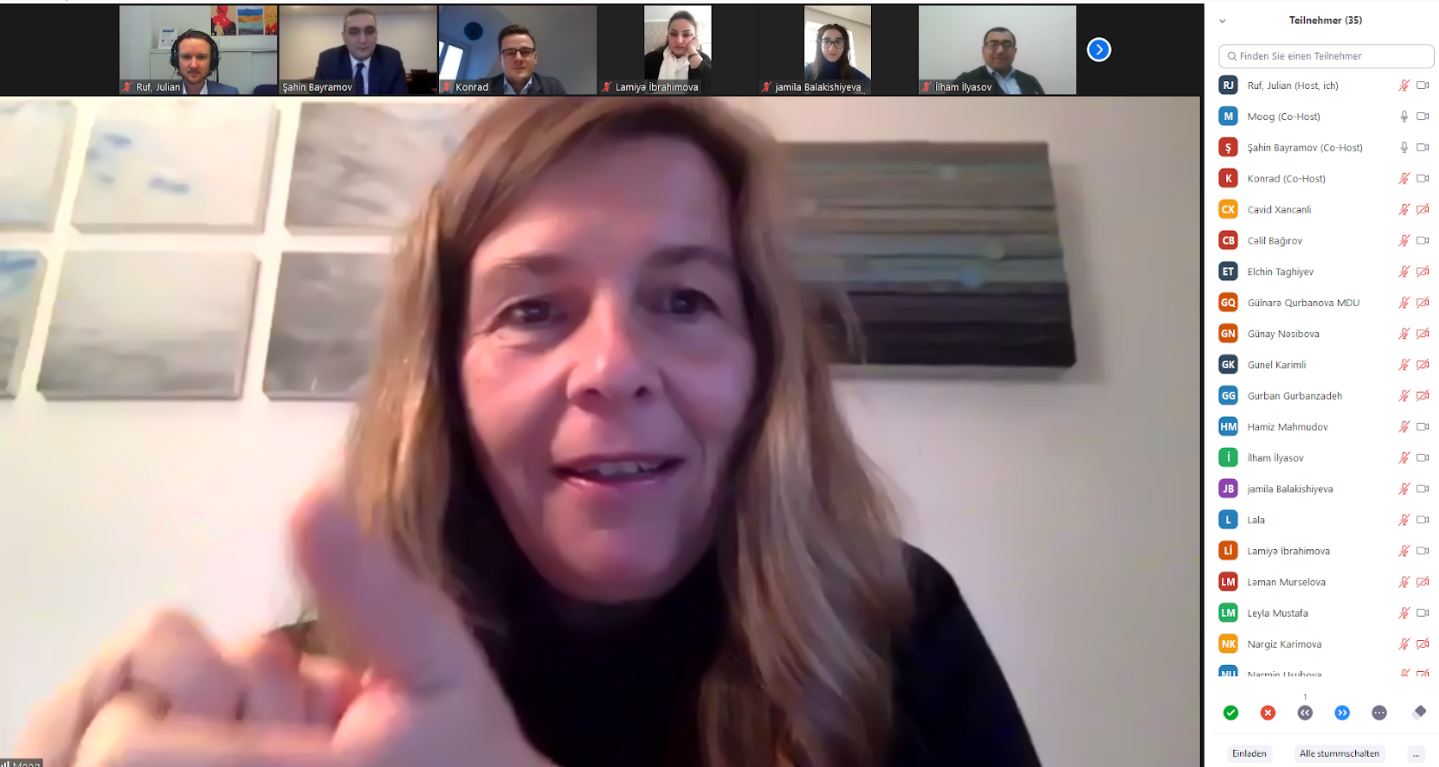 MDU ilə birgə layihənin həyata keçirilməsindən məmnunluğunu ifadə edən Siegen Universitetinin biznes və iqtisadiyyat fakültəsinin kafedra müdiri, professor Petra Muq layihə çərçivəsində təşkil olunacaq təlimlərin faydalı olması üçün bütün hazırlıqların görüldüyünü bildirib. Hər biri beş gün davam edəcək iki təlimin mövzuları barədə danışan P.Muq tədbir iştirakçılarına təlimlərin nəzəri, praktiki və texniki nüansları barədə ətraflı məlumat verib.