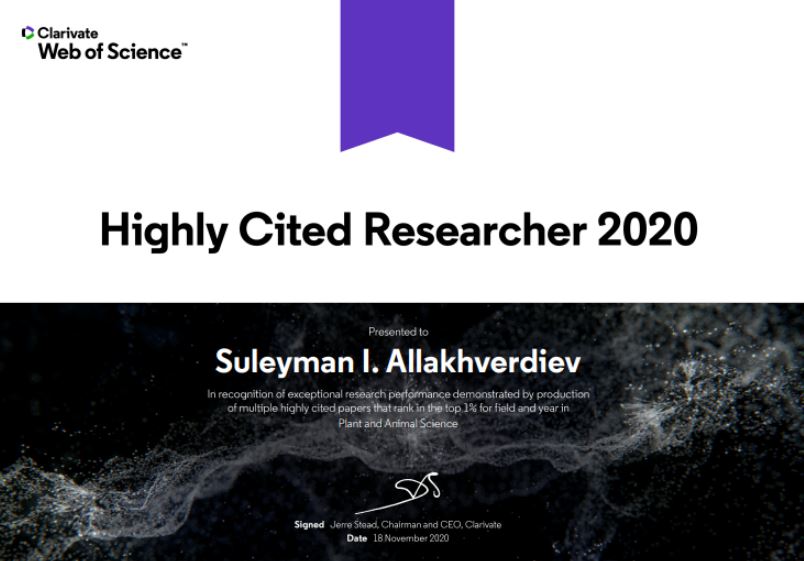 2020-ci ildə 21 tədqiqat sahəsi üzrə ən çox istinad olunan alimlərin elit qrupunda azərbaycanlı alim, Rusiya Elmlər Akademiyası Bitki Fiziologiyası İnstitutunun laboratoriya müdiri, Biologiyanın Fundamental Problemləri İnstitutunun baş elmi işçisi, AMEA-nın Molekulyar Biologiya və Biotexnologiyalar İnstitutunun beynəlxalq bionanotexnologiya laboratoriyasının müdiri, biologiya elmləri doktoru Süleyman Allahverdiyev yer alıb.