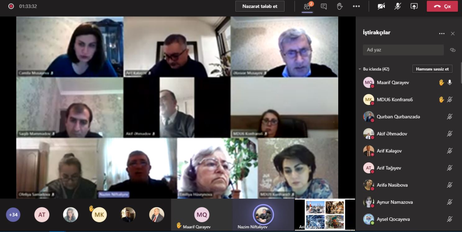Microsoft Teams platforması üzərindən online formatda keçirilən bölmə iclaslarında həm MDU-nu, həm də respublikanın digər ali təhsil müəssisələrini, elmi-tədqiqat institutlarını təmsil edən tədqiqatçıların məruzələri dinlənilib.