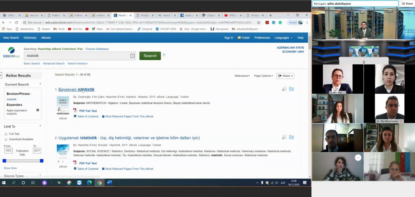 Azərbaycan Dövlət İqtisad Universitetinin (UNEC) Kitabxana-İnformasiya Mərkəzinin direktoru Adilə Abdullayeva “Mərkəzin elektron resursları və elektron xidmətlər haqda” çıxışında vurğulayıb ki, UNEC Kitabxana İnformasiya Mərkəzi 2019-cu ildə Əsaslı kitabxananın bazasında yaradılıb. Diqqətə çatdırılıb ki, mərkəz universitetin tədris prosesinə, elmi-tədqiqat və innovativ fəaliyyətinə uyğun olaraq fondunu Azərbaycan, ingilis, rus və türk dillərində kitab, kitabça, jurnal, qəzet, tədris proqramı, dissertasiya, avtoreferat və digər kitabxana-informasiya resursları ilə formalaşdırır.