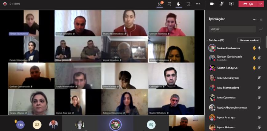 Microsoft Teams platforması üzərindən online formatda “Tarixi Zəfər” mövzusunda keçirilən görüşün moderatoru MDU-nun rektoru Şahin Bayramov Vətən müharibəsində canından və qanından keçmiş şəhidlərmizin xatirəsinin uca tutulması, onların adlarının əbədiləşdirilməsi, cəsur əsgər və zabitlərimizin şücaətlərinin yüksək qiymətləndirilməsi, qəhrəmanlıqlarının təbliği istiqamətində həyata keçirilən genişmiqyaslı tədbirlərdən bəhs edib.