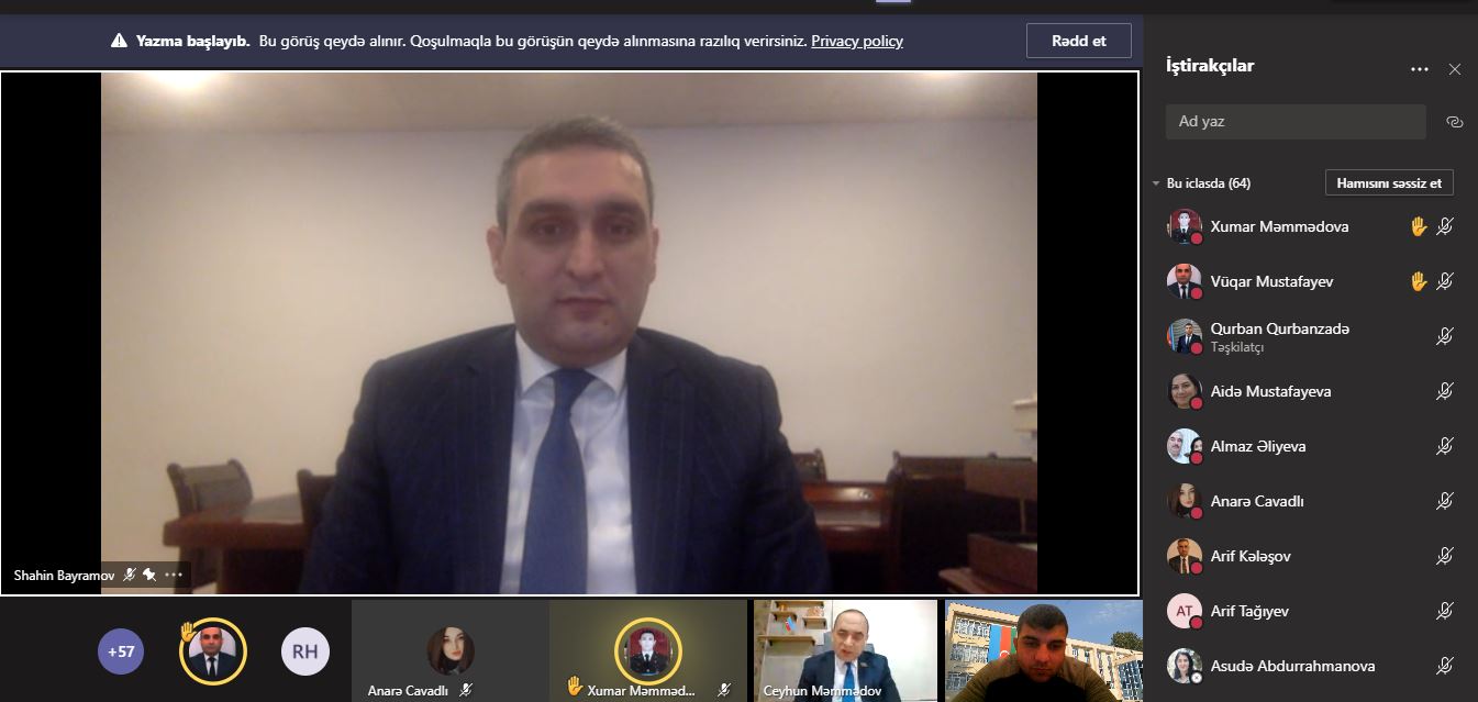 Microsoft Teams platforması üzərindən təşkil edilən görüşün qonağı Milli Məclisin deputatı, ilahiyyat üzrə fəlsəfə doktoru Ceyhun Məmmədov olub.