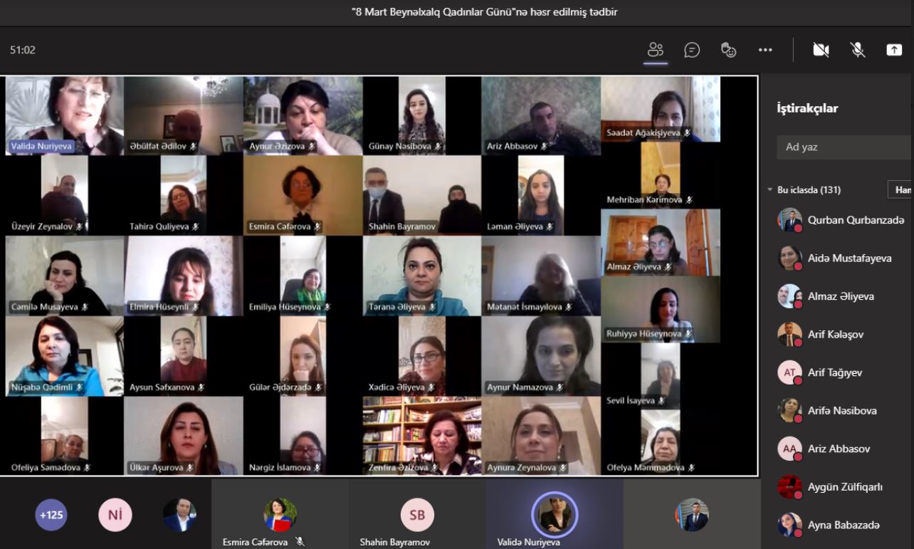 Sonra MDU-nun Humanitar fənlər kafedrasının müdiri Esmira Cəfərova, İctimai Nəzarət Şurasının üzvü Ədalət Quliyeva çıxış edərək qadınların gənc nəslin yetişdirilməsində, onların dünyagörüşünün formalaşdırılmasında böyük rol oynamasını vurğulayıb, universitetdə elmi, pedaqoji və inzibati sahələrdə qadın əməkdaşların fəallığından bəhs ediblər.