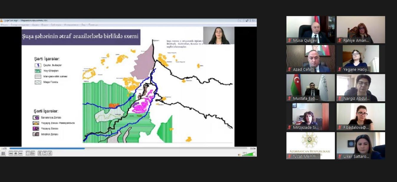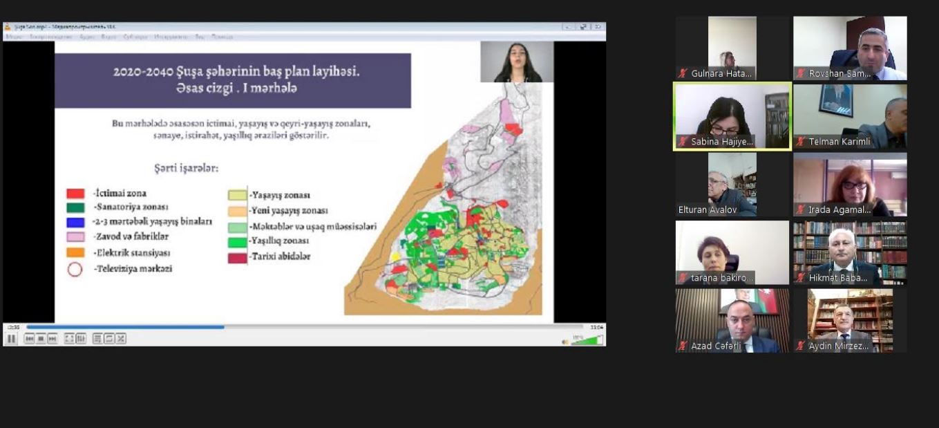 Layihədə şəhərsalma strukturunun inkişafı istiqaməti üzrə tələbələrə rəhbərlik edən universitetin dosenti, Əməkdar memar Yeganə Hacıyeva Şuşa şəhərinin 2020-2040-cı illər üzrə baş plan layhəsi barədə danışıb, tələbələrin iştirakı ilə görülən işlər izləyicilərə təqdim olunub. Məlum olub ki, birinci mərhələdə əsasən ictimai, yaşayış və qeyri-yaşayış zonaları, sənaye, istirahət və yaşıllıq əraziləri üzrə işlər görülüb. Sonrakı mərhələdə yeni yaşayış zonaları təklif olunub, şəhərin mövcud ərazisinin 2040-cı ilə qədər yeni sərhədləri ilə bərabər təyini, Şuşa üçün ekoturizm marşrutunun, ümümi yaşıllıq sahəsinin rekreasiya zonasının yenilənməsi, yeni tikililər üçün ərazilərin ayrılması, küçələrin şəhərətrafı kateqoriyalarının bölünməsi, ayrılması, piyada turist marşrutlarının təyini və s. həyata keçirilib.