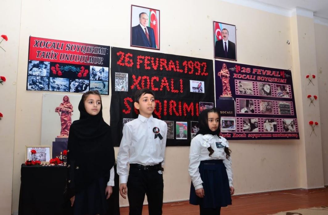 Tədbirdə şagirdlərin ifasında faciəyə həsr olunan səhnələr göstərilib, məktəbin foyesində isə dama oyunu izlənilib.