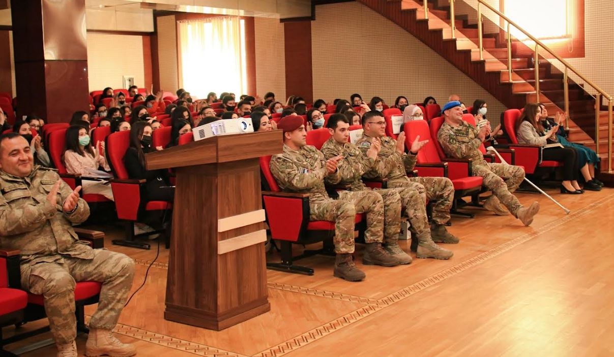 Tədbirdə Qarabağ Müharibəsi Əlilləri, Veteranları və Şəhid Ailələri İctimai Birliyinin sədri Mehdi Mehdiyev, Qarabağ Əlilləri və Veteranları Cəmiyyətinin sədri Növrəstə Yusifova, Vətən müharibəsi iştirakçıları və qaziləri - komando qrupunun komandiri Ramiz Məmmədzadə, İbrahim Həsənov, polkovnik -leytenant İntiqam Məhərrəmov, polkovnik-leytenant Nihad Abdullayev, polkovnik-leytenant Akif Rəhimov, kəşfiyyatçı Vidadi Əliyev, XTQ-nin ehtiyatda olan hərbi qulluqçuları- Natiq Mehdiyev və Elməddin Novruzov döyüş yolları haqqında çıxış edib, müharibə xatirələrini tələbələrlə bölüşüblər.