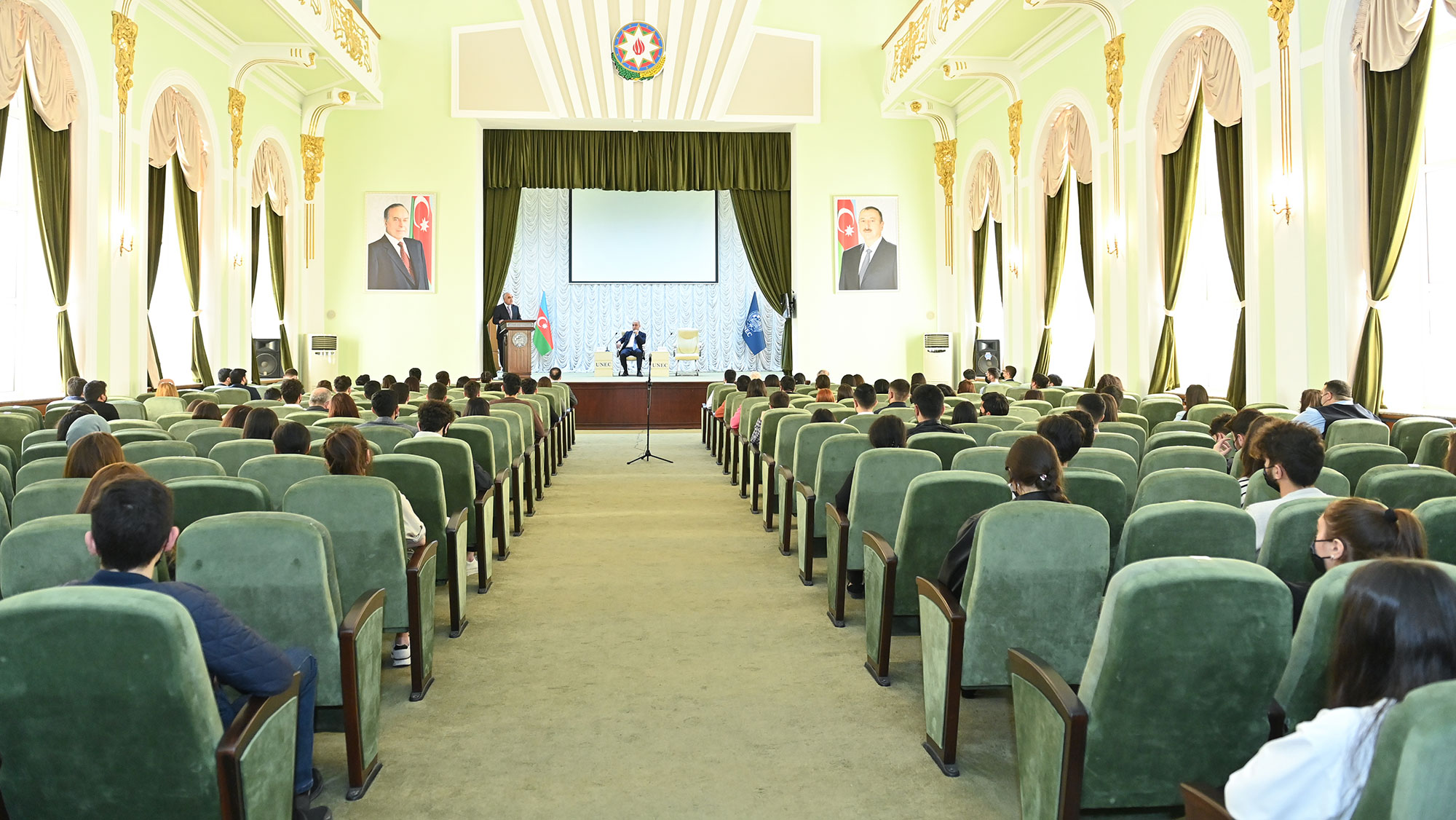 Təhsil naziri Emin Əmrullayev ölkədə ali təhsilin inkişafı istiqamətində görülən işlərdən, gələcək prioritetlərdən, tələbələrə dövlət dəstəyindən, “Gənclərin xarici ölkələrin nüfuzlu ali təhsil müəssisələrində təhsil almalarına dair 2022–2026-cı illər üçün Dövlət Proqramı”nın mahiyyətindən danışıb. Tələbələrə fərdi bacarıqlarını inkişaf etdirməyi, elmi tədqiqatlara marağı daha artırmağı, innovativ layihələrdə fəal olmağı tövsiyə edən nazir, UNEC-də bu istiqamətdə bütün imkanların yaradıldığını vurğulayıb.