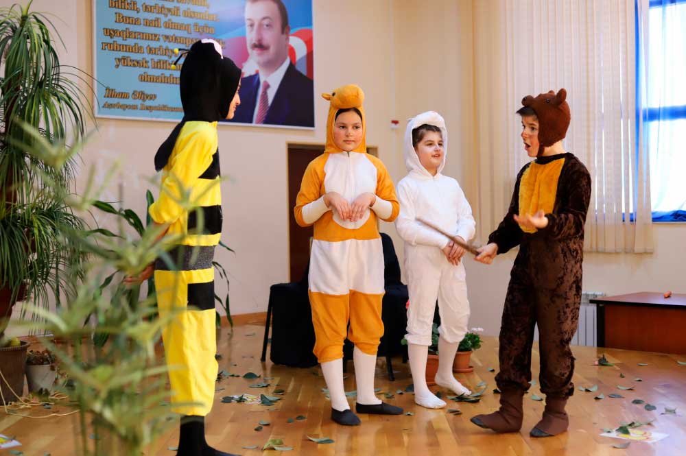 Daha sonra şagirdlərin ifasında Azərbaycan ədiblərinin əsərləri əsasında hazırlanmış səhnəciklər nümayiş etdirilib.