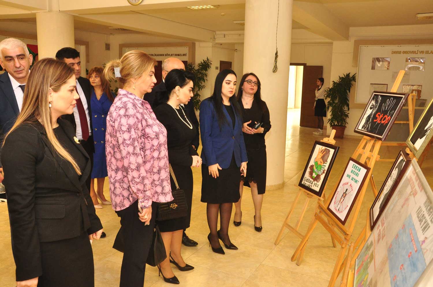 Öncə qonaqlar şagirdlərin əl işlərindən ibarət sərgiyə baxış keçiriblər.