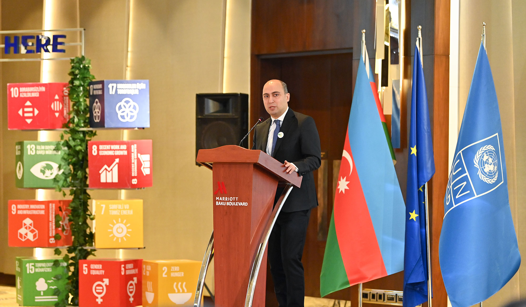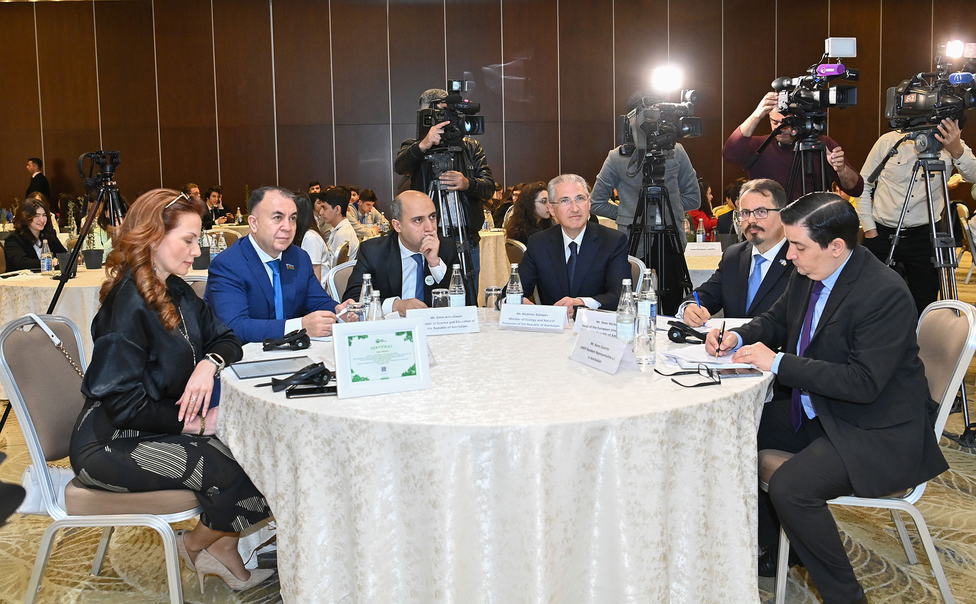 Simpoziumda Ekologiya və Təbii Sərvətlər Nazirliyi, Avropa İttifaqı və BMTİP nümayəndələri “Gələcək burada başlayır” məktəb müsabiqəsi iştirakçılarının hazırladıqları layihələrlə tanış olublar.