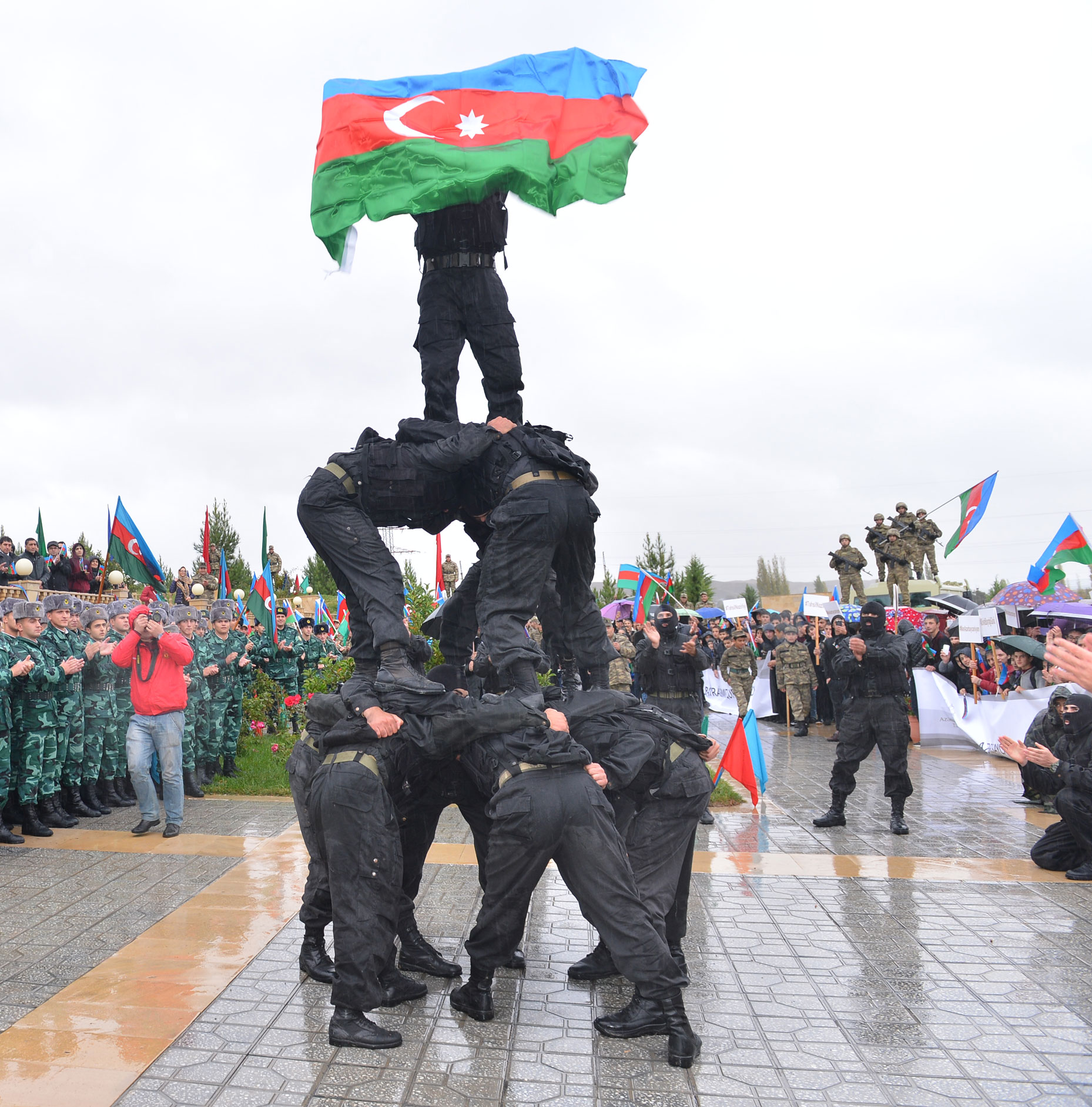 Daha sonra əsgərlər döyüş hazırlığı səviyyəsini nümayiş etdiriblər, şagirdlər tərəfindən bayrağımız haqqında mahnılar ifa olunub.