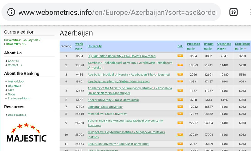 http://www.webometrics.info/en/Europe/Azerbaijan?sort=asc&order=Excellence%20Rank%2A
