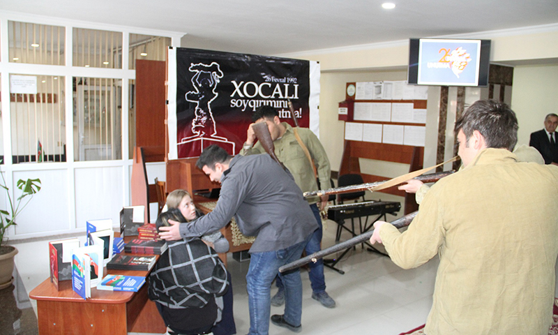 Tələbələrin Xocalı soyqırımına aid təqdim etdiyi teatrlaşdırılan səhnələr tədbir iştirakçılarında bir daha gəncliyin tarixi faciələrə həssaslığı, yeri gələrsə silaha sarılıb döyüşlərə atılması əminliyini yaradıb.