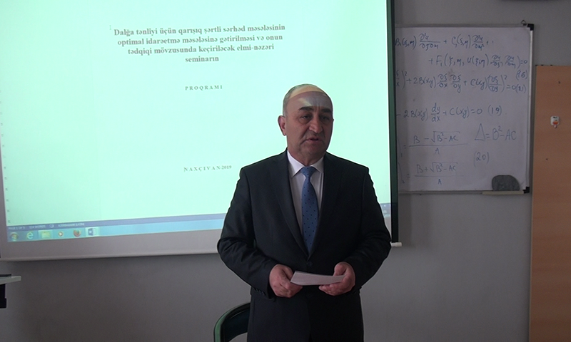 “Dalğa tənliyi üçün qarışıq şərtli sərhəd məsələsinin optimal idaretmə məsələsinə gətirilməsi və onun tədqiqi” mövzusunda keçirilən seminarı “İnformatika” kafedrasının dosenti Elşən Məmmədov açaraq bildirib ki, aparılan tədqiqatda ikiölçülü dalğa tənliyi üçün qarışıq şərtləri olan sərhəd məsələsi optimal idaretmə məsələsinə gətirilib, bu məsələdə optimal idarəedicinin varlığı isbat edilib və optimallıq üçün variasional bərabərsizlik şəklində zəruri və kafi şərt çıxarılıb.