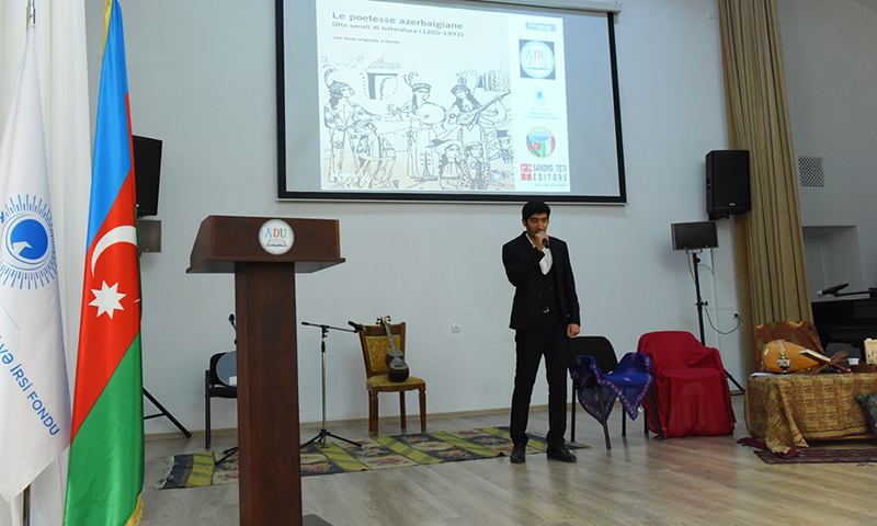 Azərbaycan Dillər Universitetində (ADU) Beynəlxalq Türk Mədəniyyəti və İrsi Fondunun təşəbbüsü ilə İtaliyada italyan dilində çap olunmuş “Azərbaycanın qadın şairlərinin poeziyası: Səkkiz əsrlik ədəbiyyat” adlı kitabın təqdimat mərasimi keçirilib.
