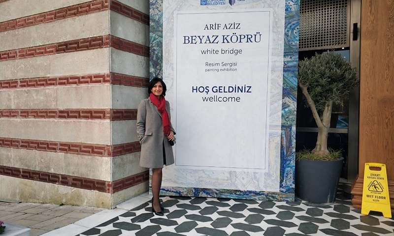 Martın 6-da İstanblun Üsküdar Bələdiyyəsinin təşkilati dəstəyi ilə NEVMEKAN SAHİL salonunda ADMİU-nun “Dizayn və dekorativ sənət” kafedrasının müdiri, Xalq rəssamı, professor Arif Əzizin “Bəyaz körpü” fərdi sərgisinin açılışı olub. Tədbirin birinci hissəsi günün birinci yarısında baş tutub. 8 mart Ümümdünya Qadınlar günü ilə bağlı Üsküdarda keçirilən III-cü “İz burakan kadınlar zirvəsi” tədbirində Arif Əzizin “Bəyaz” adlı əsəri Türkiyənin “Yaşılay” cəmiyyətinin və “İslam İşbirliyi Təşkilatı”nın prezidenti Esra Erdoğan Albayraka təqdim olunub. Esra Albayrak Azərbaycan və Türkiyə arasında qardaşlıq və dostluq əlaqələrinin möhkəmlənməsində incəsənətin xüsusi rolunu qeyd edib. Daha sonra Arif Əziz və ADMİU-nun Rəssamliq fakültəsinin dekanı Sevil Kərimova NEVMEKANDA yerləşən “Xanım Soltanların Muzeyi”nin açılışında iştrak ediblər. Muzeyin ekspozisiyasında Osmanlı dövrünün 100-ə yaxın qadın geyimlərindən ibarət gəlincik kolleksiyası tamaşaçılara təqdim olunub.
