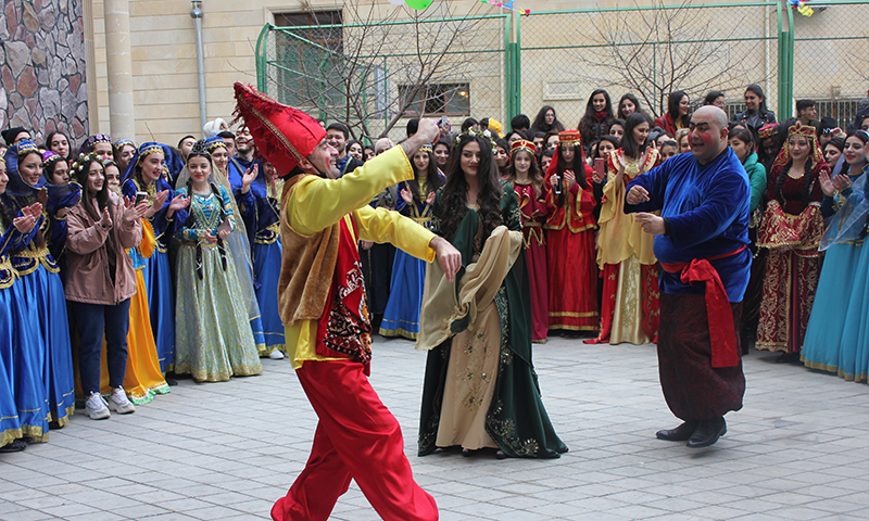 Sonra qara zurnanın sədaları altında Kosa, Keçəl və Bahar qızının gəlişi, Kosa ilə Keçəlin deyişməsi bayram şənliyində xüsusi ab-hava yaradıb. Milli geyimli tələbələr tədbir iştirakçılarına bayram xonçası təqdim ediblər.