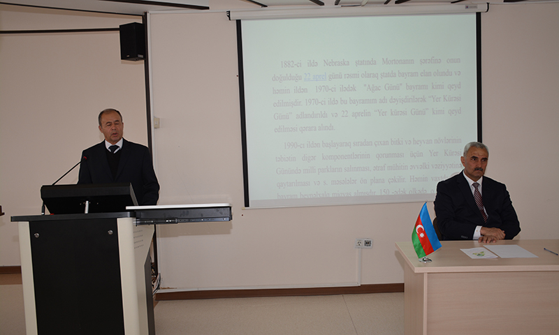 Coğrafiya üzrə fəlsəfə doktoru, dosent Əli Həsənov “Yer kürəsi günü”nün qeyd edilməsi və Yer kürəsinin inkişaf tarixi” mövzusunda çıxış edərək, hazırda 150-yə yaxın ölkədə, o cümlədən Azərbaycanda bu günün qeyd olunduğunu bildirib. O nəzərə çatdırıb ki, “Beynəlxalq Yer günü” ərəfəsində insanlar müxtəlif ekoloji tədbirlərdə iştirak etməklə ağaclar əkir, yaşıllıqlara qulluq edir, yaşadıqları əraziləri müxtəlif tullantılardan təmizləyir. Ekoloqlar ətraf mühitin sağlamlaşdırılmasına yönələn kütləvi aksiyalar keçirməklə əhalini ətraf mühitin mühafizəsi sahəsində daha fəal olmağa çağırır.