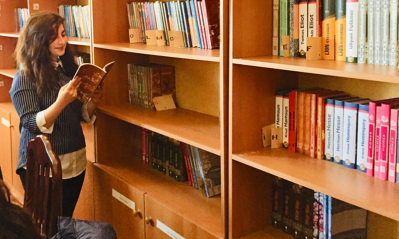 Sonra tədbir debat, sual-cavab formatında davam edib. Kollecin tələbələri ən çox sevdikləri kitablardan, bədii əsər qəhrəmanlarından danışaraq oxuduqları kitablardan sitatlar gətiriblər.
