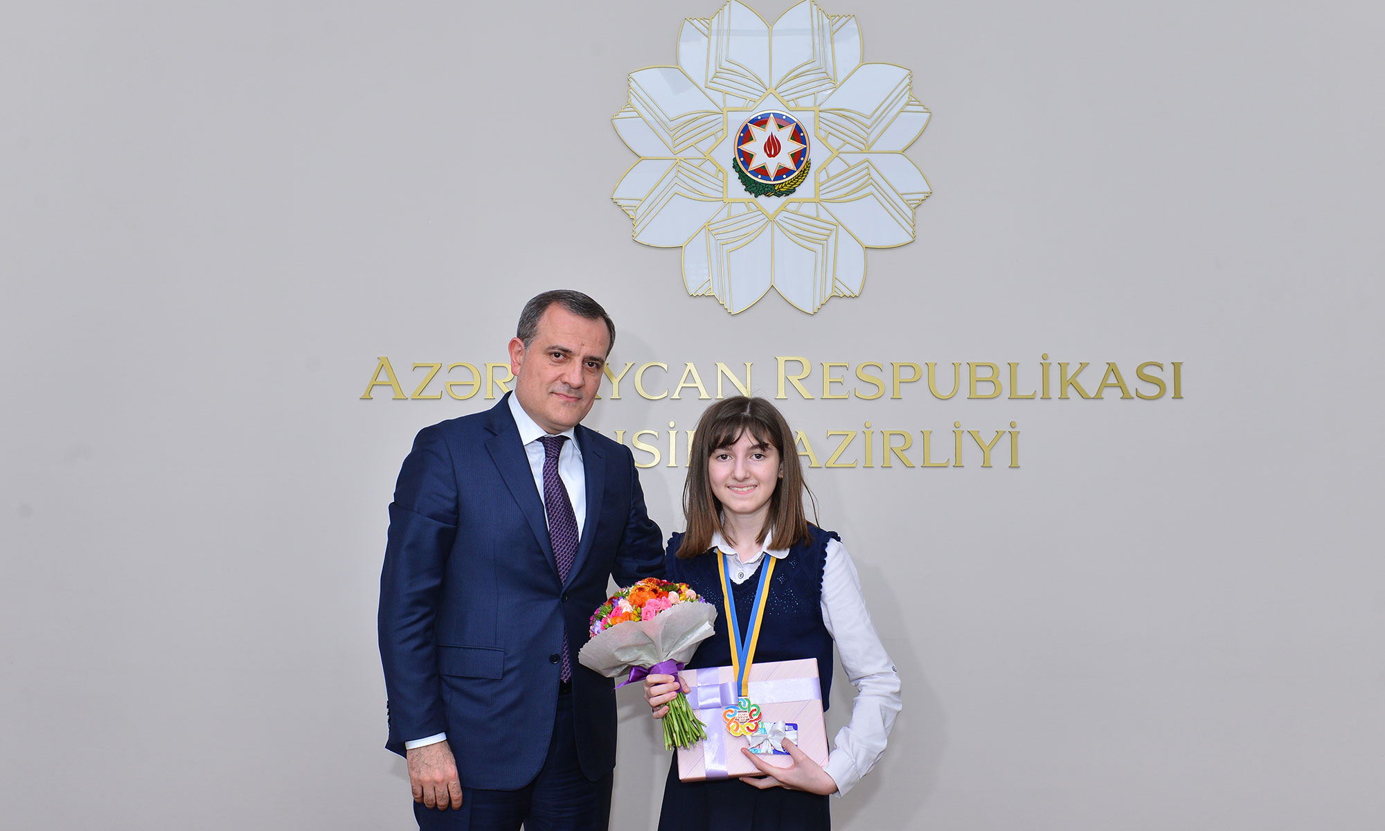 Təhsil naziri Ceyhun Bayramov 8-ci Avropa Qızlar Riyaziyyat Olimpiadasının tarixində ən gənc qalib olan, Bakı şəhəri 257 nömrəli tam orta məktəbin VII sinif şagirdi Fidan Qarayeva ilə görüşüb.