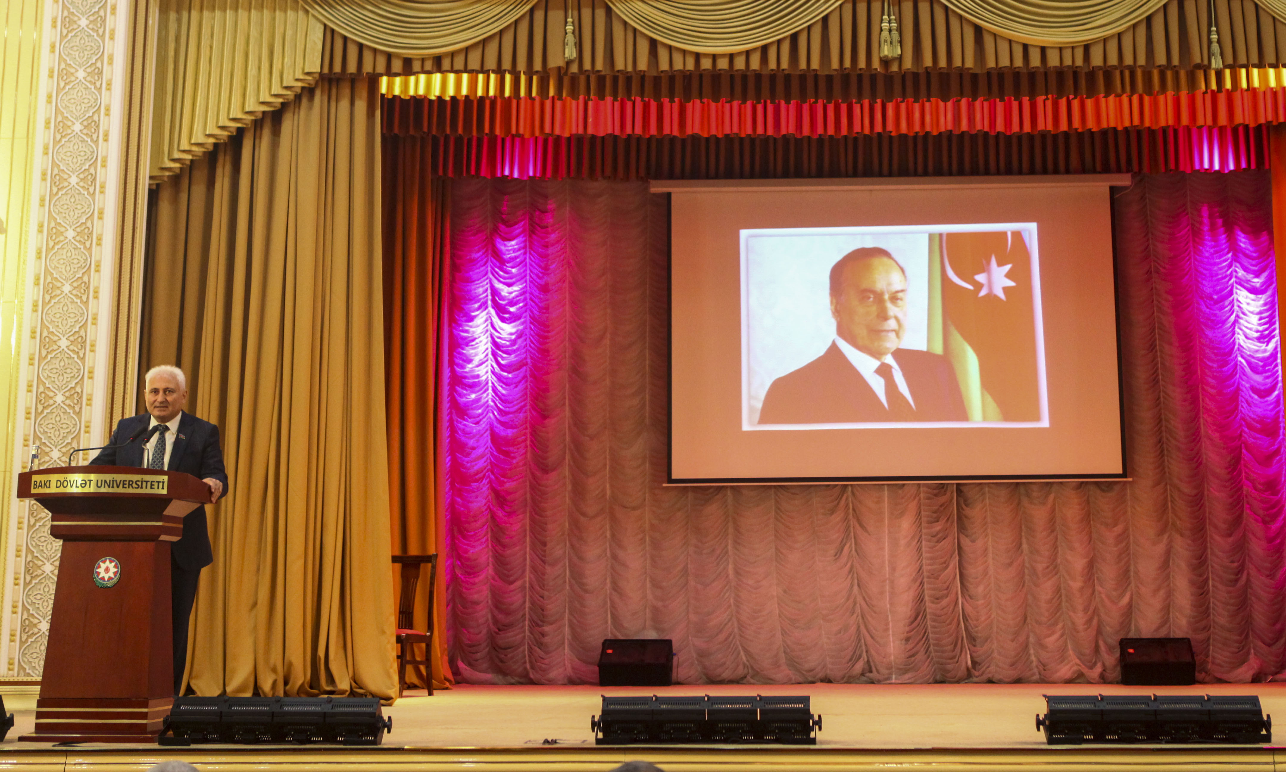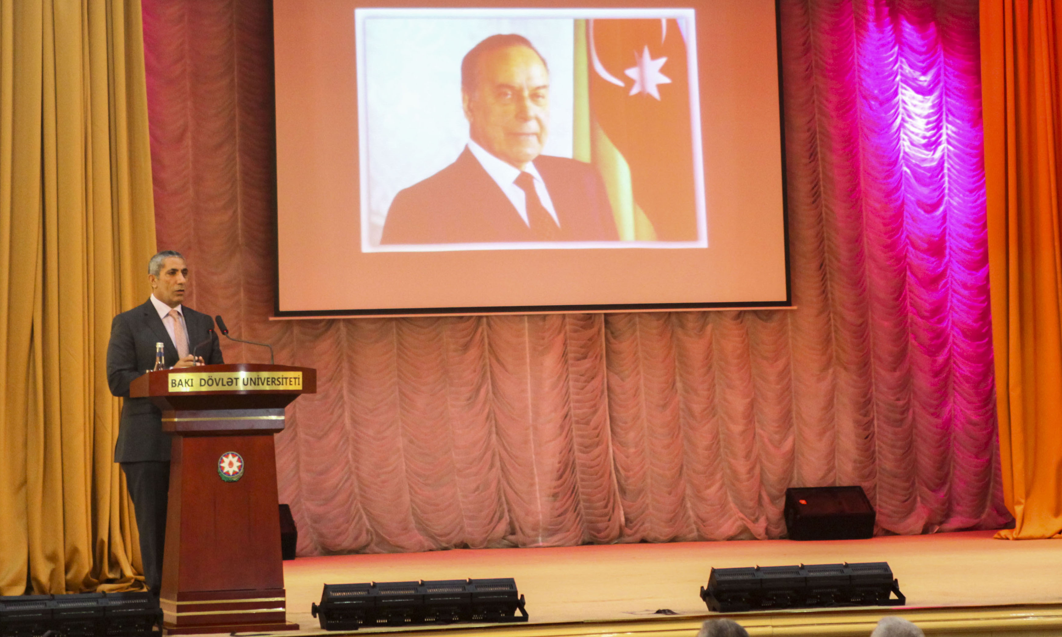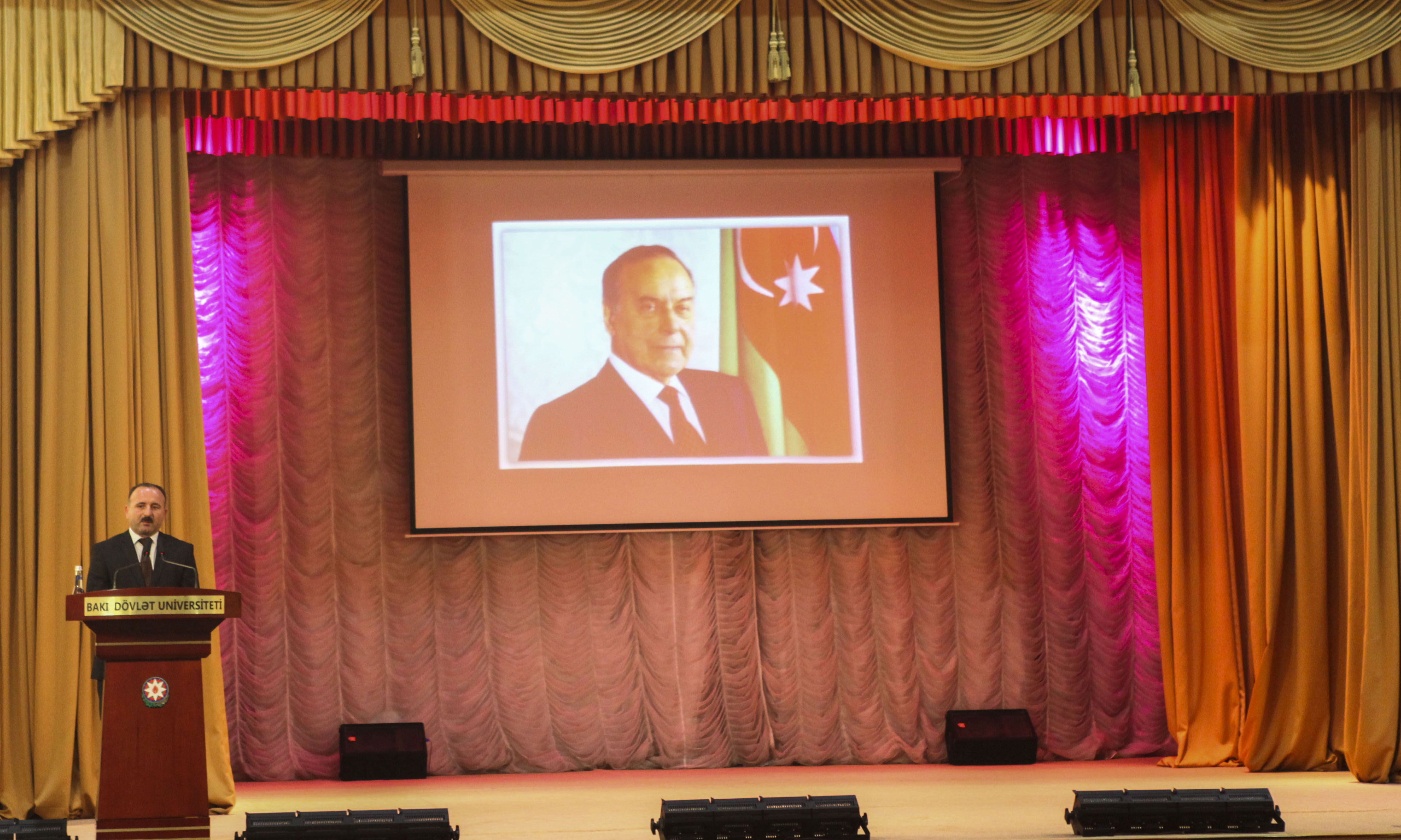 BDU-nun rektoru Elçin Babayev ulu öndər Heydər Əliyevin müstəsna tarixi xidmətlərindən, demokratik dövlət quruculuğu konsepsiyasından, böyük xilaskarlıq missiyasından danışıb. Ümummilli lider Heydər Əliyevin elmə, təhsilə daim böyük önəm verdiyini diqqətə çatdıran rektor ulu öndərin ideyalarının Prezident İlham Əliyev tərəfindən uğurla həyata keçirildiyini bildirib.