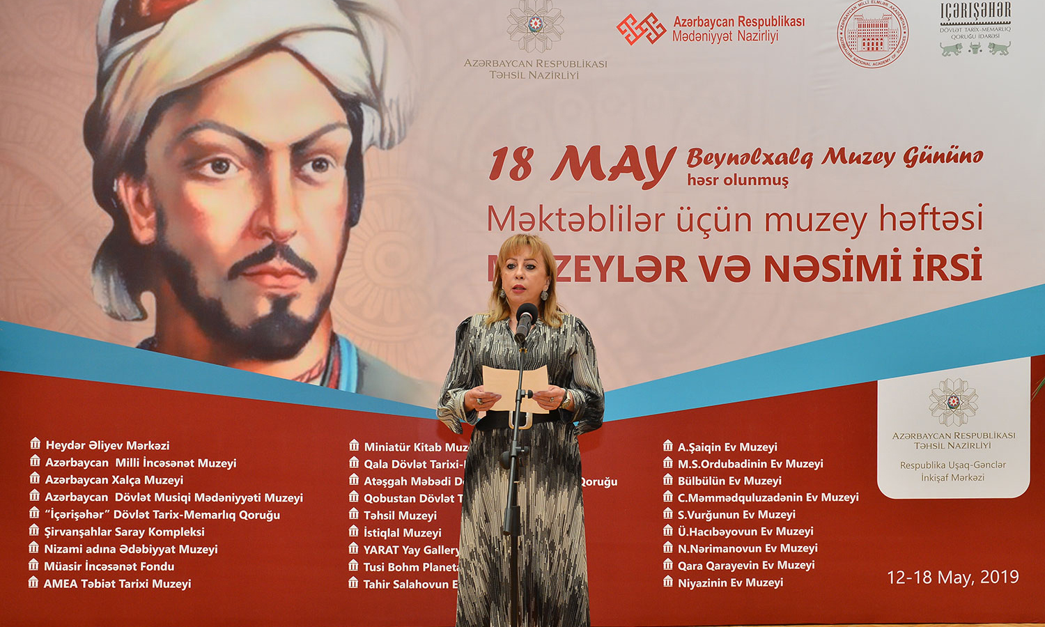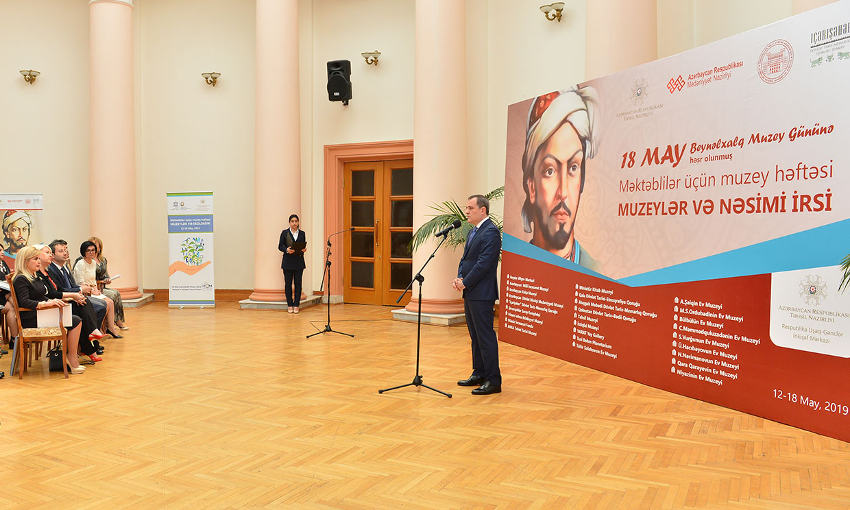 Tədbirdə çıxış edən Mədəniyyət naziri Əbülfəs Qarayev respublikamızda fəaliyyət göstərən muzeylərdən söz açıb, son illər istər məktəblilərin, istərsə də digər şəxslərin muzeylərə maraq göstərdiyini bildirib. Muzeylərdə məktəbliləri qəbul etmək üçün lazımi şəraitin olduğunu diqqətə çatdıran nazir Mədəniyyət və Təhsil nazirliklərinin birgə əməkdaşlığından, bu əməkdaşlığın ümumi işə müsbət təsir etdiyindın danışıb.