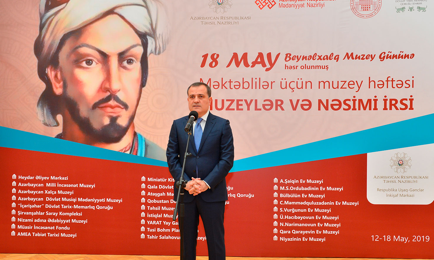 Açılış mərasimini giriş sözü ilə açan Təhsil naziri Ceyhun Bayramov şagirdlərin bədii estetik zövqlərinin formalaşması baxımından muzeylərin böyük əhəmiyyət kəsb etdiyini deyib. Təhsil naziri bildirib ki, məktəblilərin muzeylərə ekskursiyalarının təşkili təkcə muzeylər həftəsində deyil, digər vaxtlarda da təmin olunması qarşıda duran vəzifələrdən biridir. Nazir həmçinin həmin ekskursiyaların şagirdlərin tariximiz, adət-ənənələrimiz, tarixi şəxsiyyətlərimiz, tanınmış incəsənət xadimləri haqqında daha geniş və ətraflı məlumat almasında, onların dünyagörüşünün zənginləşməsində mühüm rolunu vurğulayıb.