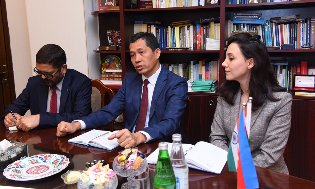 Səfir Hindistanın Cəvahirləl Nehru Universitetində Azərbaycan dilinin tədrisinin təşkil olunacağını qeyd edib. Qonaq Azərbaycan və Hindistanın qabaqcıl universitetləri arasındakı əməkdaşlığın yüksək nəticələr verəcəyinə əminliyini ifadə edib. Səfir eyni zamanda hindşünaslıq ixtisasında təhsil alan tələbələr və növbəti illərdəki tələbə qəbulu məsələləri ilə maraqlanıb. Şri B.Vanlalvavna ADU-da hind dilinin tədrisi ilə məşğul olan hindli müəllimin universitetdəki fəaliyyətinin davam etdirilməsi ilə bağlı danışıqlar aparıldığını deyib. O, həmçinin Hindistanı təbliğ edən böyük tədbirlərin birgə təşkilində lazımi resursların təmin olunması ilə bağlı təkliflərini irəli sürüb.