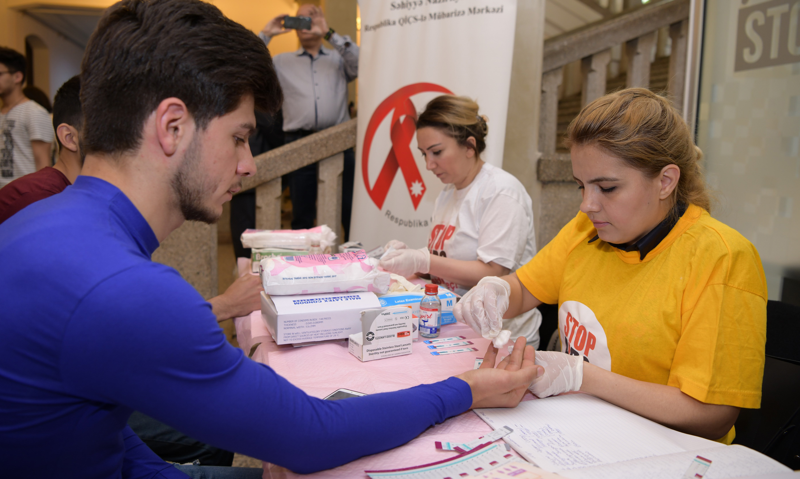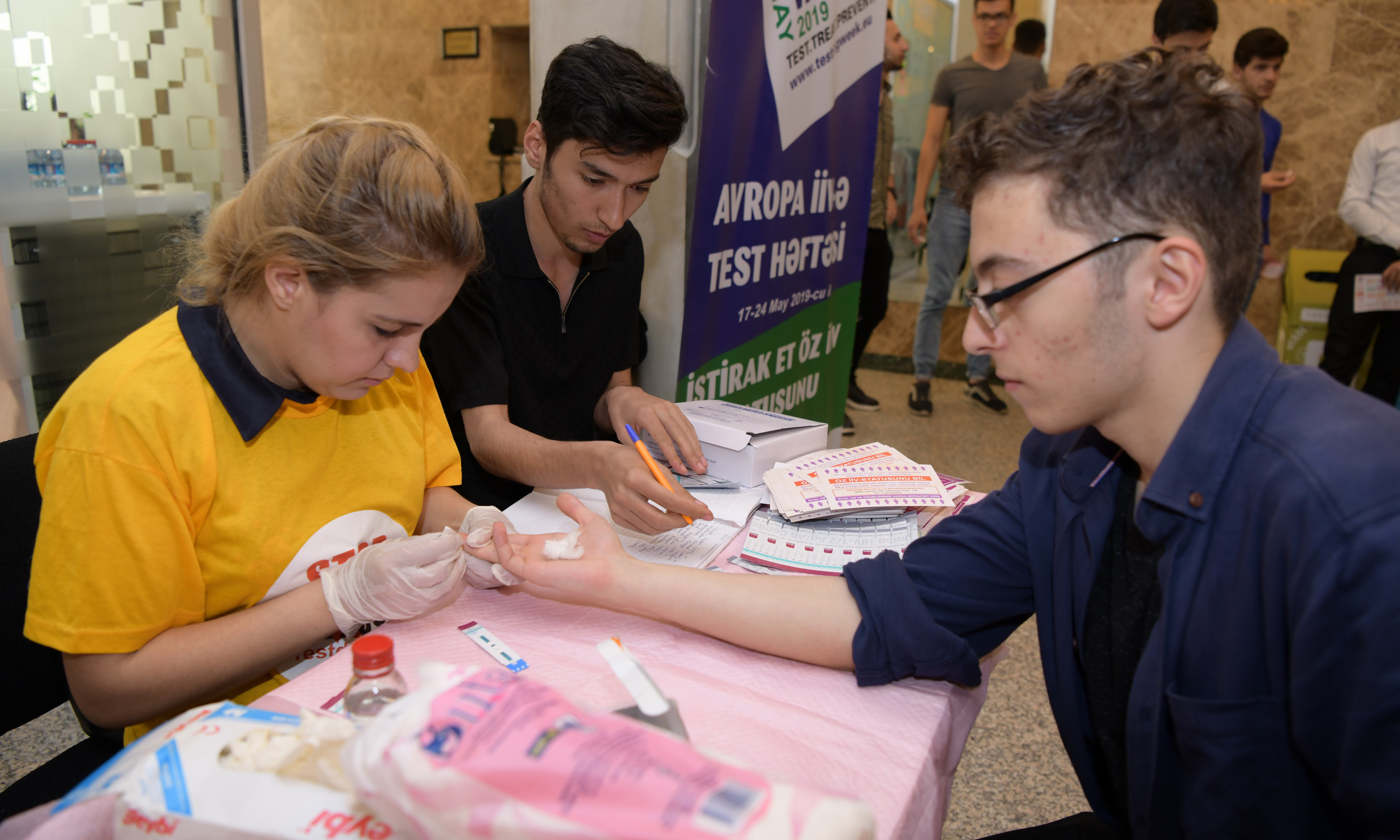 Tədbirdə QİÇS-lə Mübarizə Mərkəzinin əməkdaşları tərəfindən tələbələr üçün İnsanın İmmun Çatışmazlığı Virusuna görə laborator testlər keçirilib, onlara QİÇS-lə mübarizəyə dair maarifləndirici məlumatlar verilib.