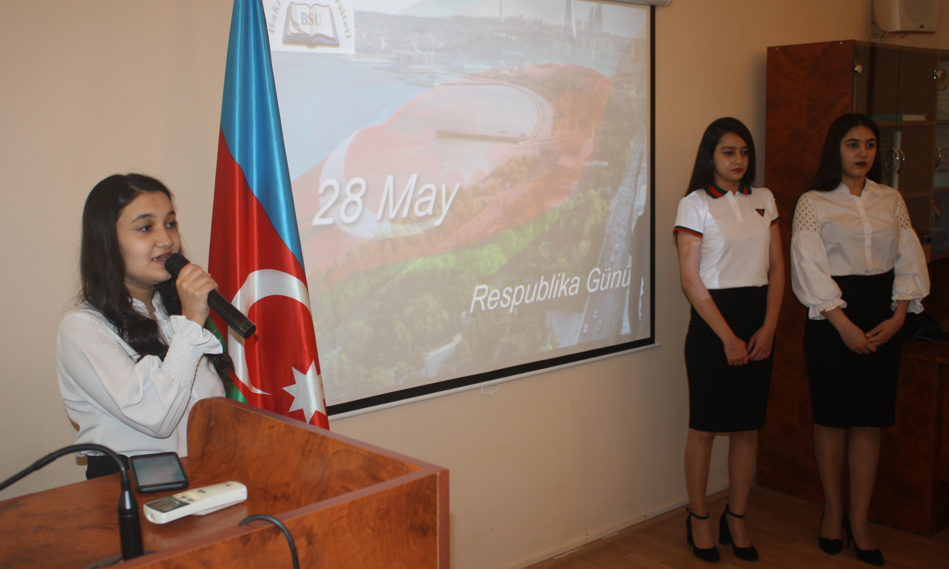 Tədbiri açan tərbiyə işləri üzrə prorektor Xanım Sultanova BSU-da Respublika Günü ilə əlaqədar silsilə tədbirlər keçirildiyini diqqətə çatdırıb, əlamətdar gün münasibəti ilə iştirakçıları təbrik edib.