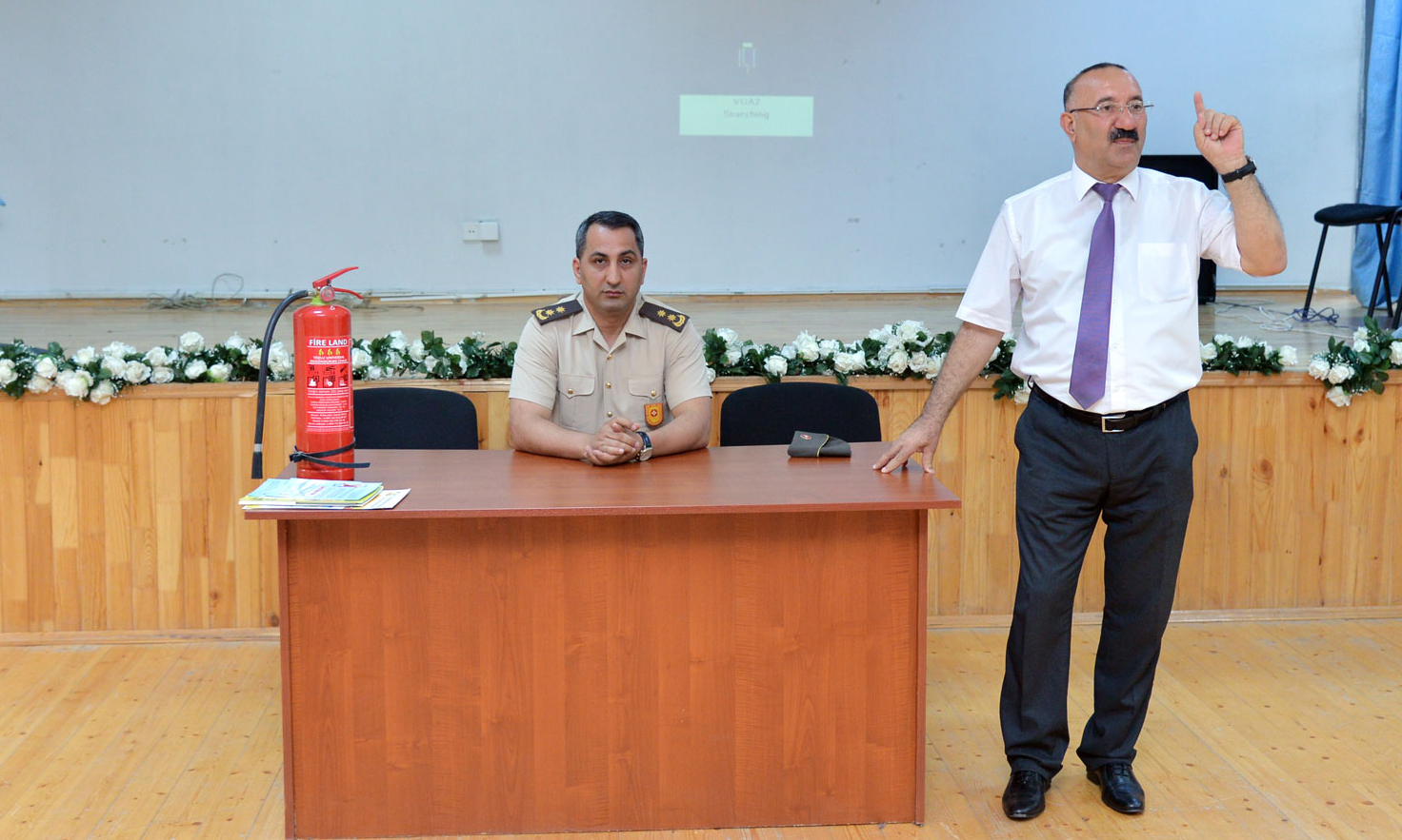 Tədbir nəzəri və praktiki hissədən ibarət olub. Nəzəri hissədə yanğından, dəm qazından mühafizə, meşələrdə və çimərlikdə təhlükəsizlik tədbirləri, fövqəladə hal zamanı davranış qaydaları, yaralılara tibbi yardımın göstərilməsi, kimyəvi zəhərlənmə zonasının lokallaşdırılması, obyektə kimyəvi kəşfiyyatın təşkili, od söndürən balondan istifadə mövzuları üzrə şagirdlər və pedaqoji heyətə ərtaflı məlumatlar verilib. Eləcə də şagirdlərin fövqəladə hallarla bağlı bilikləri yoxlanılıb.
