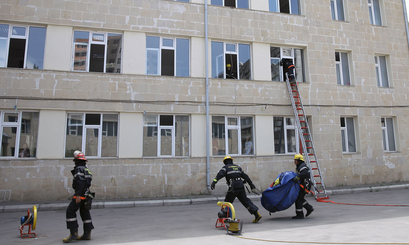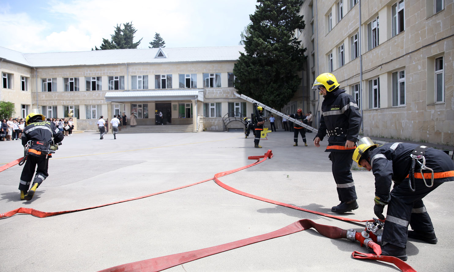 Praktiki hissədə isə məktəblilər qısa müddətdə təxliyə planına uyğun olaraq məktəbi tərk edib, FHN-nin əməkdaşları tərəfindən nümayiş etdirilən əyani vəsaitlərlə yaxından tanış olublar. Şagirdlər ilkin yardım və təxliyə zamanı bacarıqlarını nümayiş etdiriblər.
