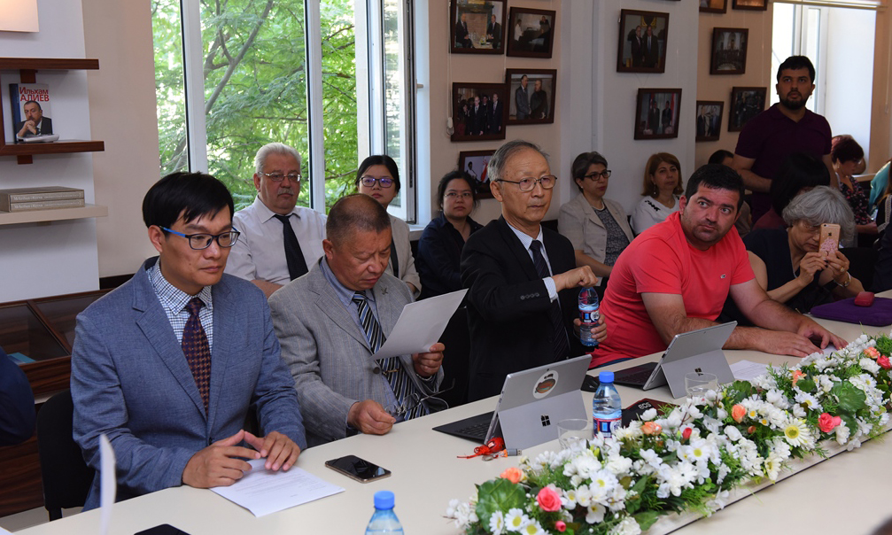 ADU-nun rektoru, akademik, Xalq yazıçısı Kamal Abdulla qonaqları salamlayıb və universitetin səmimi dostluq münasibətlərinə əsaslanan görüşlərə ev sahibliyi etməsindən məmnun olduğunu deyib. “Bu gün Azərbaycanın ədəbiyyatı, mənəviyyatı, tarixi, uzaq və yaxın keçmişi, gələcək perspektivləri bütün cəmiyyət tərəfindən elmi baxımdan araşdırılmaqdadır. Təkcə Azərbaycan alimləri tərəfindən deyil, bu araşdırmalar dünya alimləri tərəfindən aparılır. Çox ciddi və fədakarcasına görülən işlər bu cür konfranslar vasitəsilə də daha yaxşı tanınır. Sizə Azərbaycanda gözəl vaxt keçirməyinizi arzu edirəm. Arzu edirəm ki, bu universitetlər arasında yaranan elmi əməkdaşlıq və birlik dostluğa çevrilsin və o dostluqda azərbaycanlı alimlər də, Azərbaycan cəmiyyətinin üzvləri də yaxından iştirak etsinlər. Bizim arzumuz bu gün Azərbaycanı sülh şəraitində yaşayan, inkişaf edən dövlət kimi görməkdir. İnanıram ki, həm Amerikanın, həm də Çinin ən mütərəqqi qüvvələri Azərbaycan həqiqətlərini obyektiv şəkildə dəyərləndirir və qiymət verirlər. Universitetimiz sizə öz qapılarını açdığı üçün xoşbəxtəm. Arzu edirəm ki, Çinin və Amerikanın üzərində olan açıq səma, sülh şəraiti Azərbaycan və digər ölkələrdə də olsun”,-deyə rektor bildirib.