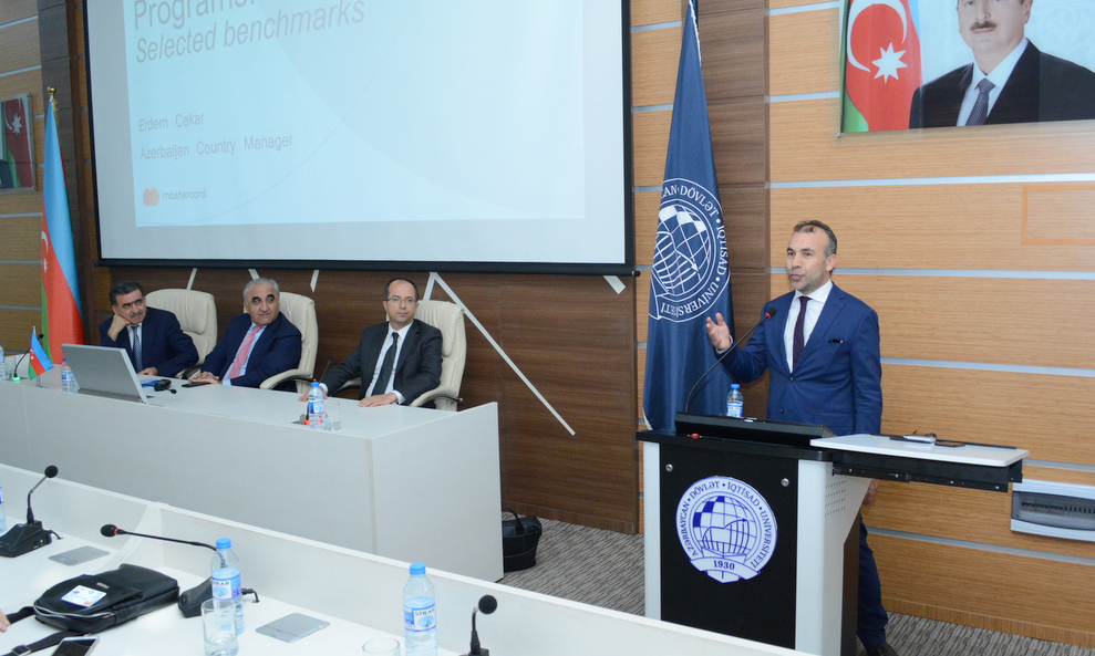Sonra Mərkəzi Bankın strateji partnyoru, rəqəmsal ödənişlər sahəsində geniş təcrübəyə malik olan “Mastercard” şirkətinin regional direktoru Süleyman Sözeri vahid tələbə kartları ilə bağlı təqdimatla çıxış edib. Şirkət rəsmisi qonşu dövlətlərin tətbiq etdiyi tələbə smart kartları və bu istiqamətdə beynəlxalq təcrübəni paylaşıb.