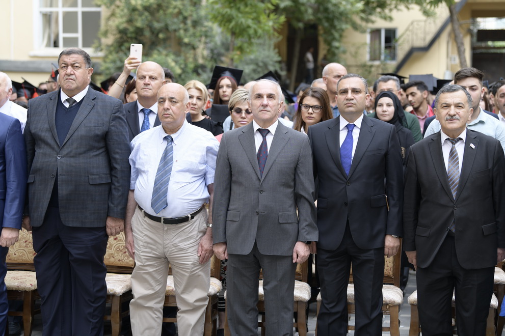 Dövlət himninin səsləndirilməsi ilə başlayan tədbirdə ADNSU-nun rektoru, professor Mustafa Babanlı bütün məzunları bu əlamətdar gün münasibətilə təbrik edərək, onlara gələcək fəaliyyətlərində uğurlar arzulayıb. O bildirib ki, bu ilin məzunları ona daha çox doğmadır, çünki ADNSU-ya gəlişləri eyni vaxta təsadüf edib. 4 il bundan qabaq ilk dəfə qədəmlərini universitetə atan tələbələr bu gün məzun adını qazanıblar. Professor M.Babanlı tələbələrin yüksək təhsil almasının vacibliyini və universitetdə hər zaman buna diqqət edildiyini qeyd edib. Eyni zamanda, ADNSU-da işəgötürənlərə lazımlı, gərəkli olan kadrlar yetişdirildiyini diqqətə çatdırıb.