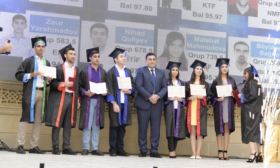 Universiteti fərqləmə ilə bitirən tələbələrə tiplomlar təqdim olunduqdan sonra ən yüksək nəticə əldə etmiş məzunların adları simvolik kötüyə həkk olunub.