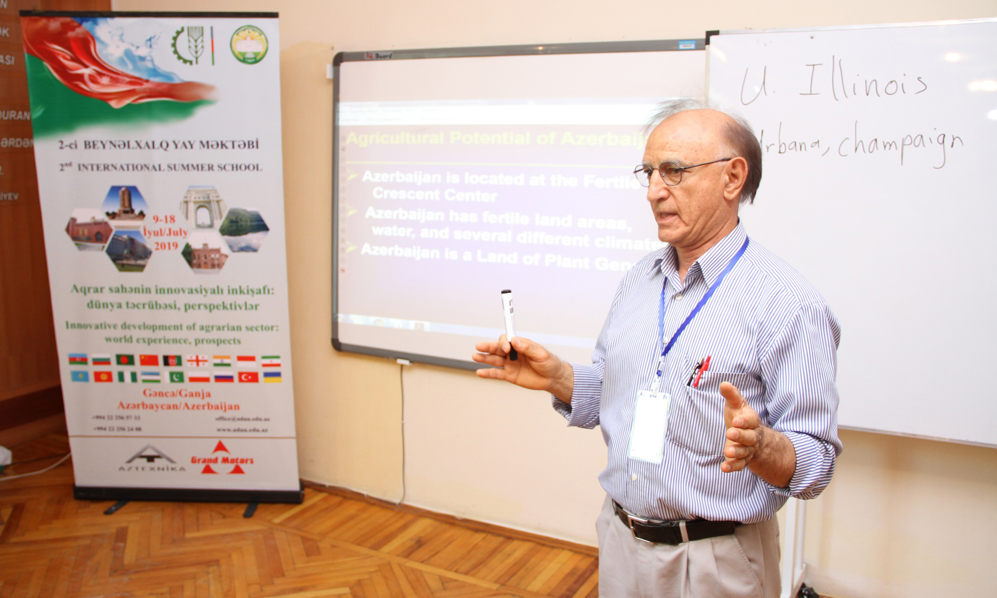 ADAU-dan verilən məlumata görə, ABŞ-ın İllinoys Universitetinin professoru Mohammad Babadoost yay məktəbi iştirakçılarına mühazirə deyib. M.Babadoost dünyada aqrar təhsil, aqrar təhsilin inkişaf tarixi, təhsilin səviyyələri, ölkəmizin kənd təsərrüfatı potensialı barədə danışıb.