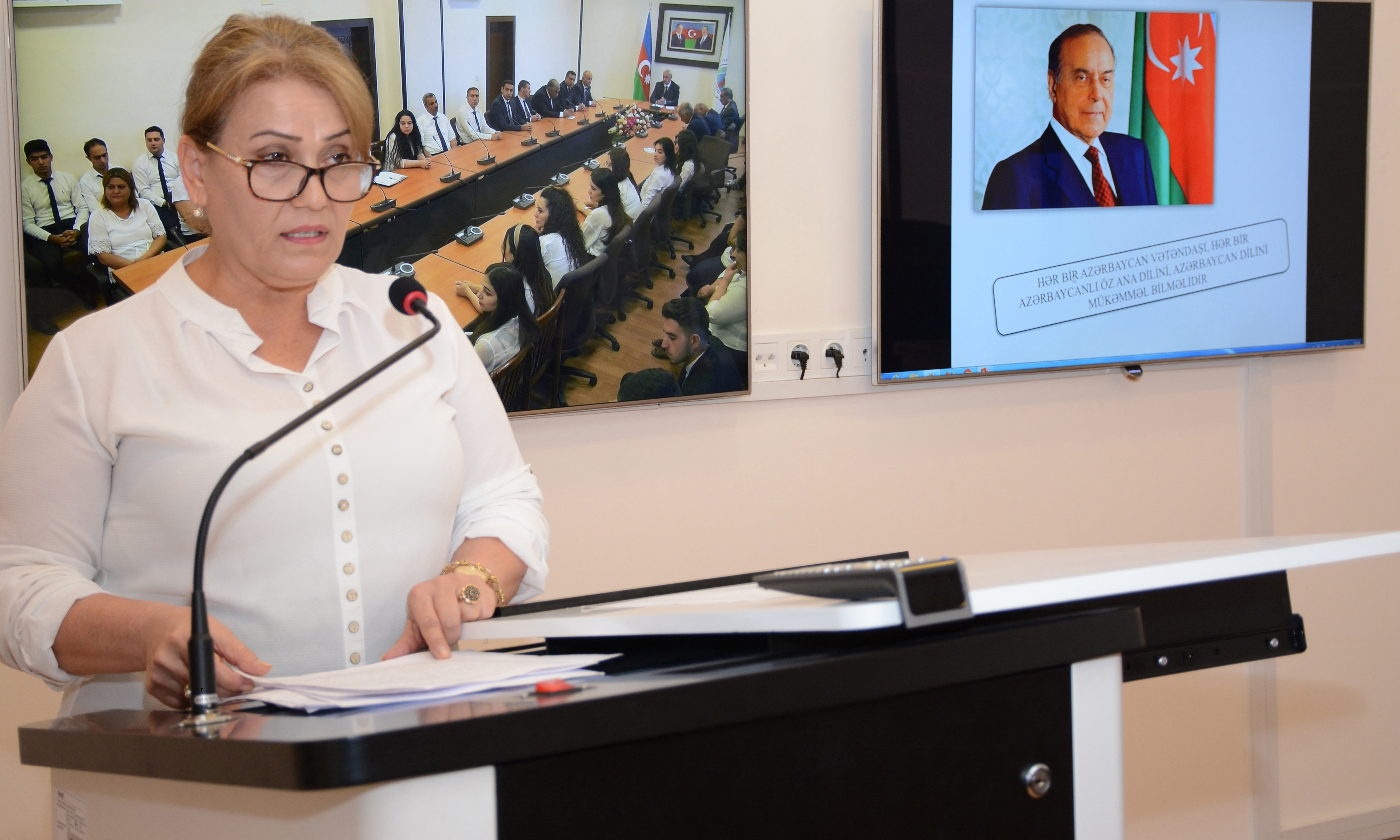 “Azərbaycan dili və ədəbiyyatı” kafedrasının dosenti, filologiya üzrə fəlsəfə doktoru Arifə Zeynalova “Azərbaycan əlifbasının yaranma tarixi və inkişafında tarixi şəxsiyyətlərin rolu” adlı çıxışında Azərbaycan əlifbasının keçdiyi inkişaf mərhələlərinə toxunub. Ümummilli liderimiz Heydər Əliyevin Azərbaycan dilinin dövlət dili kimi qəbul edilməsində, onun qorunmasında və inkişafında göstərdiyi misilsiz xidmətlərindən ətraflı bəhs edilib. Görkəmli dövlət xadimi Azərbaycan dilini xalqımızın ən böyük dəyəri, dünya azərbaycanlılarının həmrəyliyinin sarsılmaz təməli, müstəqilliyimizin əsas rəmzlərindən biri kimi hər zaman yüksək dəyərləndirib.