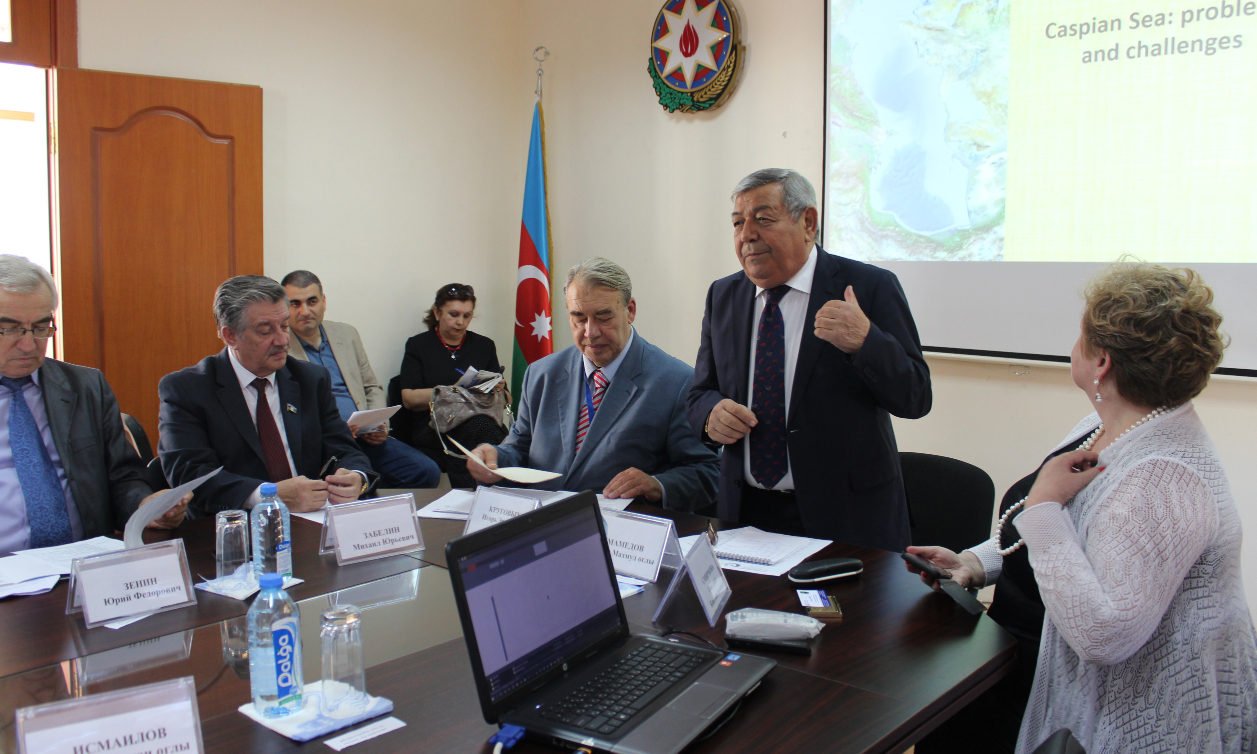 Rusiya çarı I Pyotrun vaxtında Xəzərin nərə balığını simvolizə etdiyini, XX əsrdən isə onun yerini qılınc və qalxan tutduğunu deyən akademik diqqətə çatdırıb ki, əvvəllər dəniz iki dövlətin sərhədində yerləşirdisə, SSRİ-nin dağılması nəticəsində onun ətrafında beş müstəqil dövlət yaranmışdır. Ona görə də bu ərazi geopolitik maraqların toqquşduğu bir regiondur. Və əgər Xəzərin taleyinin Aralın faciəsinə dönməsini istəmiriksə, əl-ələ verib onu məhv olmaqdan qorumalıyıq.