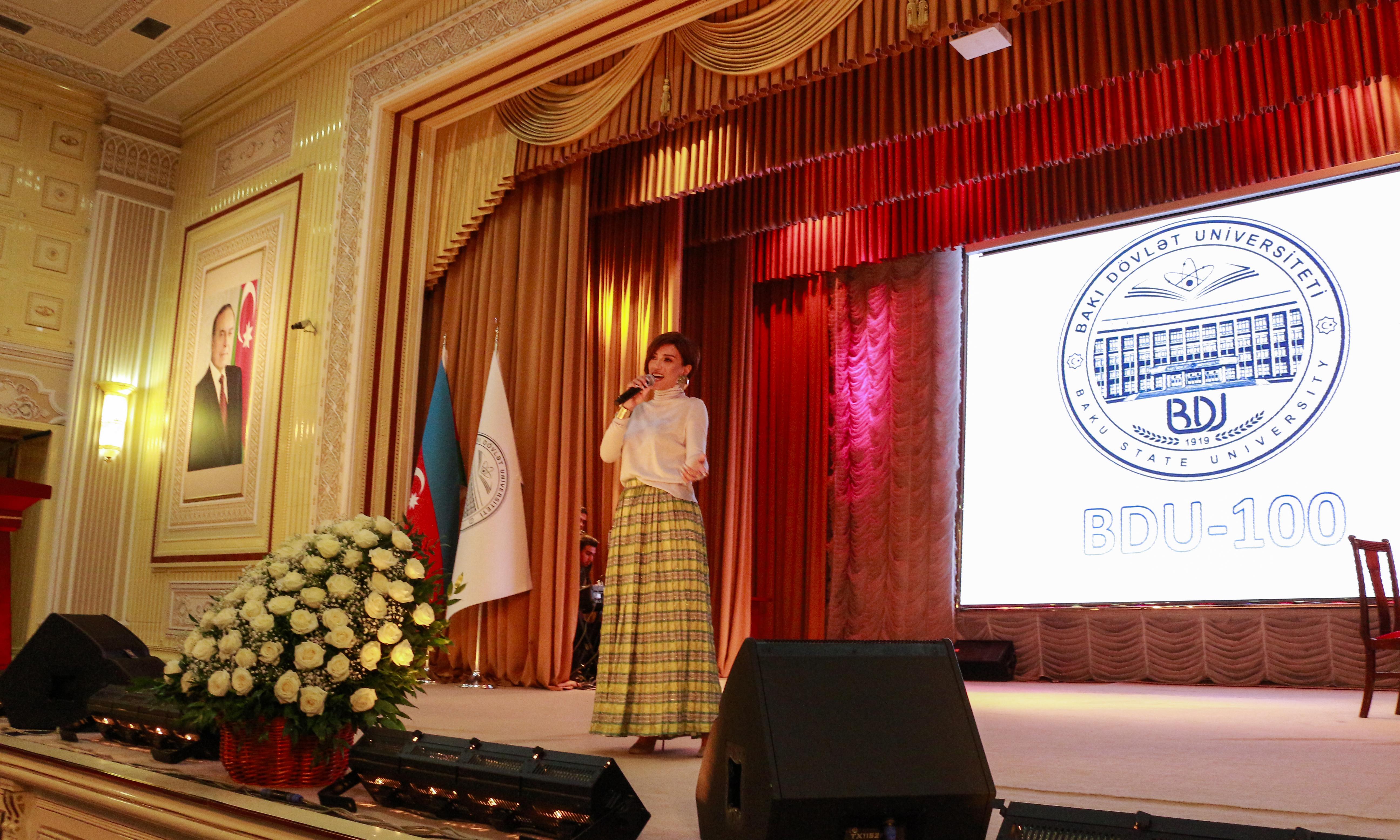 Bakı Dövlət Universitetinin (BDU) 100 illik yubileyi münasibətilə başlanan mədəni-kütləvi tədbirlər çərçivəsində yenicə Xalq artisti adını alan, estrada müğənnisi Röya Ayxan və Əməkdar incəsənət xadimi, bəstəkar Nailə Mirməmmədli universitetdə qonaq olub, konsert proqramı təqdim ediblər.
