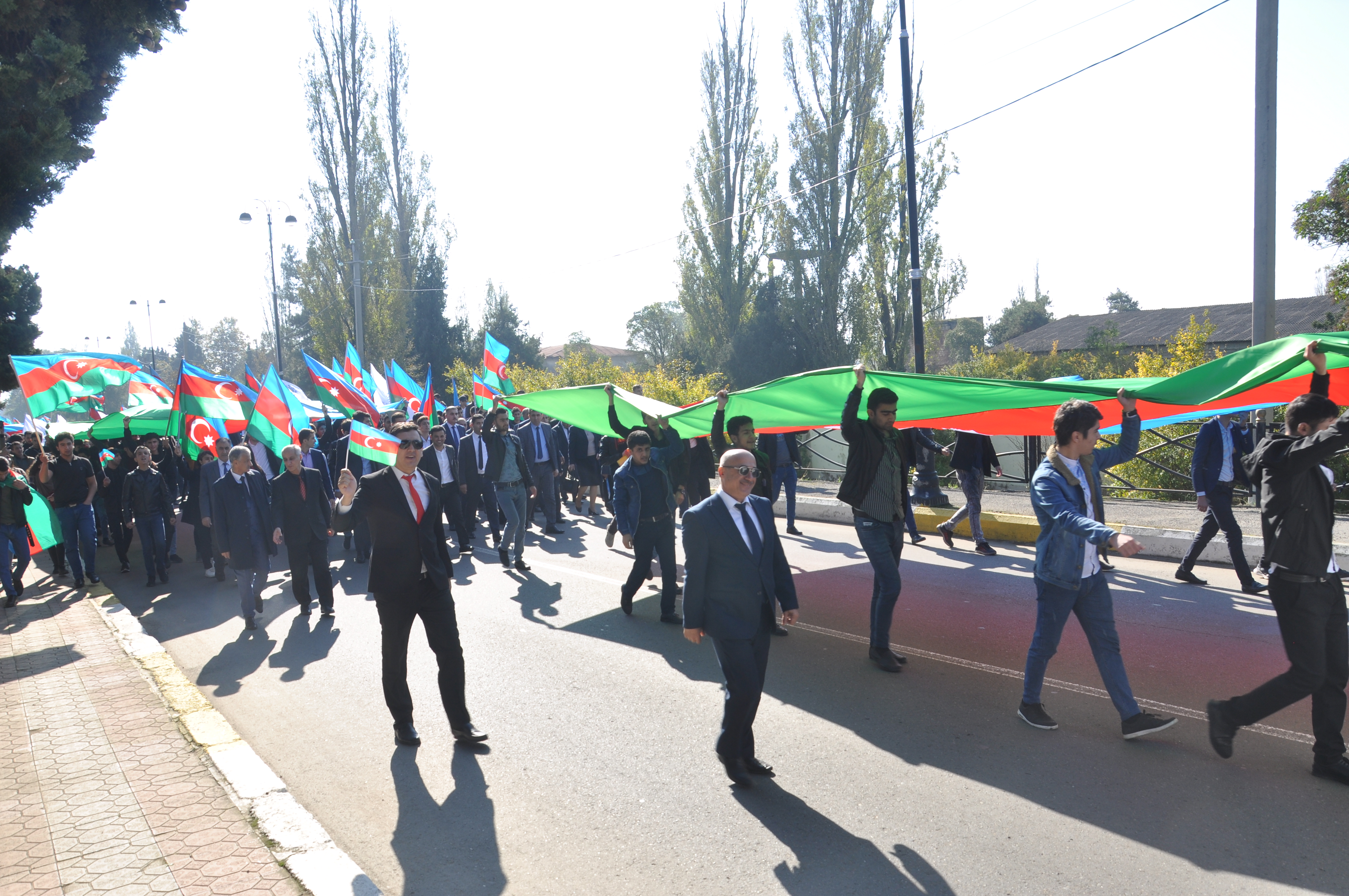 Milli atributlarımızın təbliği, gənclər arasında vətənpərvərlik hissinin artırılması məqsədi ilə keçirilən “Bayraq yürüşü” şəhərin Heydər Əliyev prospektinin girəcəyindən start götürüb. 3 rəngli Azərbaycan bayraqlarının dalğalandırıldığı izdiham Dövlət Bayrağı Meydanına qədər 4 km-lik məsafədə olub.