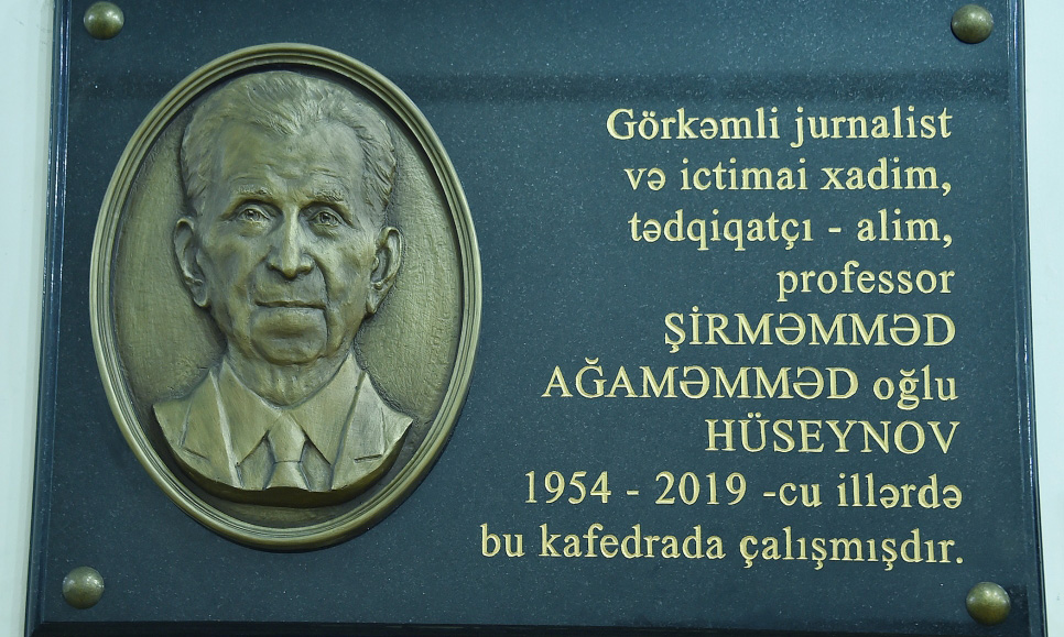 Bakı Dövlət Universitetinin (BDU) Mətbuat tarixi kafedrasının qarşısında görkəmli alim, professor, mətbuat tədqiqatçısı, Əməkdar jurnalist Şirməmməd Hüseynovun barelyefinin açılış mərasimi olub.