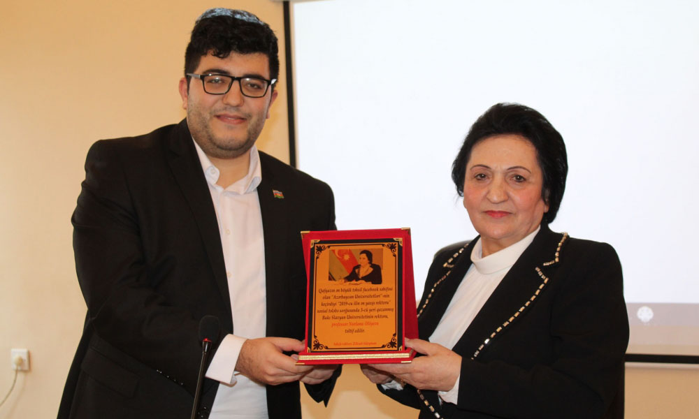 N.Əliyeva BSU-nun İctimai Etimad Şurasının sədri, təhsil eksperti, professor Şahlar Əsgərova il ərzində universitetdə keçirilən tədbirlərdə maraqlı və əhatəli çıxışlarına, mühazirələrinə görə “Bakı Slavyan Universitetinin dostu” nominasiyasının qalibi diplomunu təqdim edib.