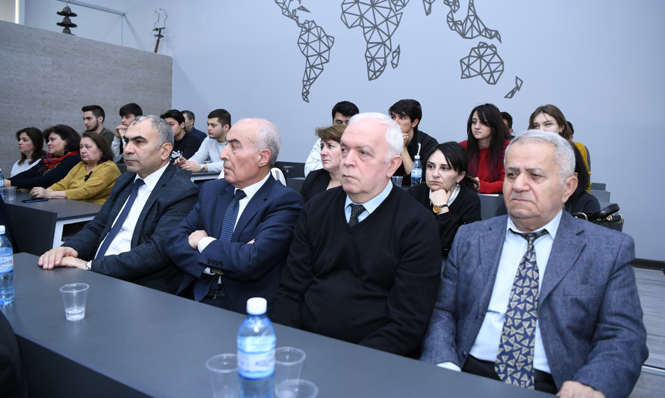 ADNSU-nun rektoru, professor Mustafa Babanlı Prezident İlham Əliyevin ADNSU-nun 100 illik yubileyinin keçirilməsi ilə bağlı sərəncamından və 100 illik çərçivəsində keçiriləcək tədbirlərdən söz açıb. ADNSU-da görkəmli şəxsiyyətlərin adına auditoriyaların olduğunu vurğulayan rektor Ç. Cuvarlının adına olan çoxfunksiyalı auditoriyanın həm dərs otağı, həm də laboratoriya kimi bir ilk olduğunu deyib.
